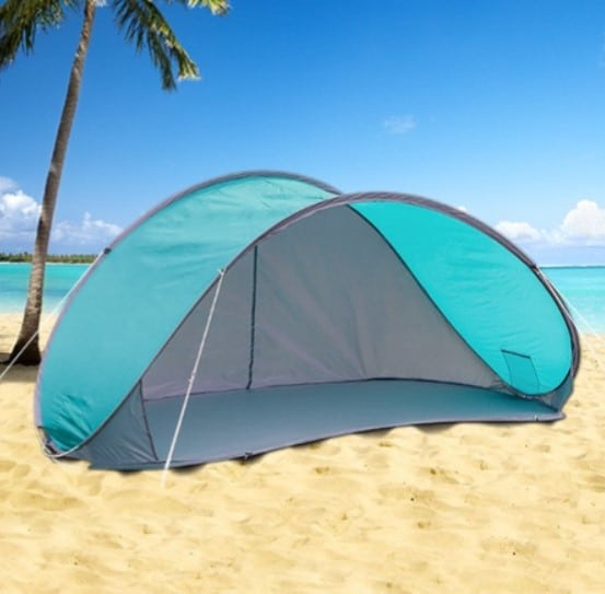 Superhandig strandtentje. Makkelijk voor al je strandspeelgoed, je badhanddoek en voor je eten en drinken. Maar ook lekker om even in de schaduw te zitten en waait het een beetje aan zee, dan kun je hier prima schuilen.