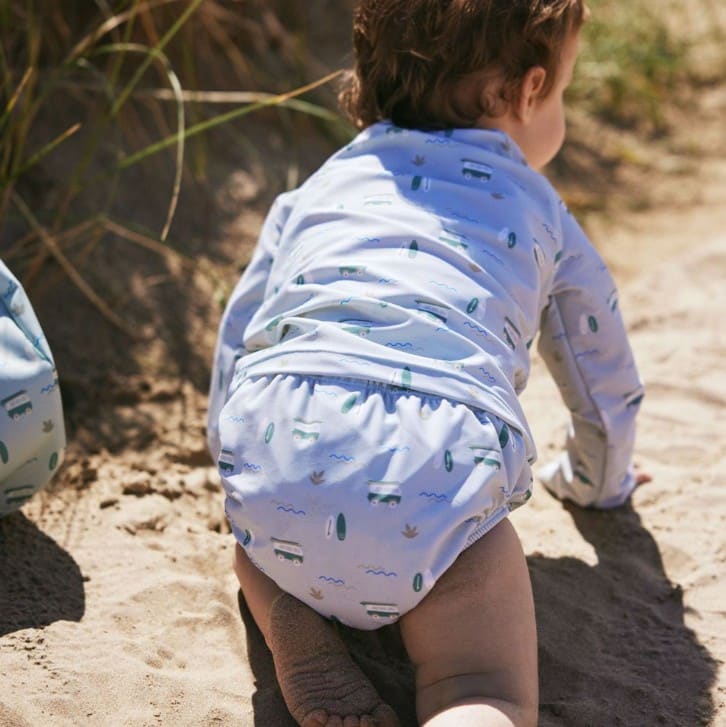 UV longsleeve top van Fresk – € 29,99 te koop bij De kleine lama. // UV zwemluier van Fresk – € 19,99 te koop bij De Kleine Lama.