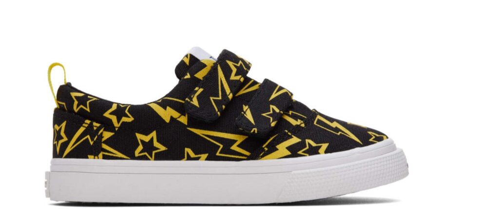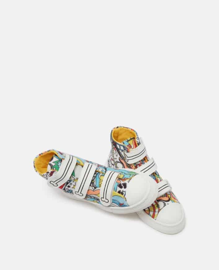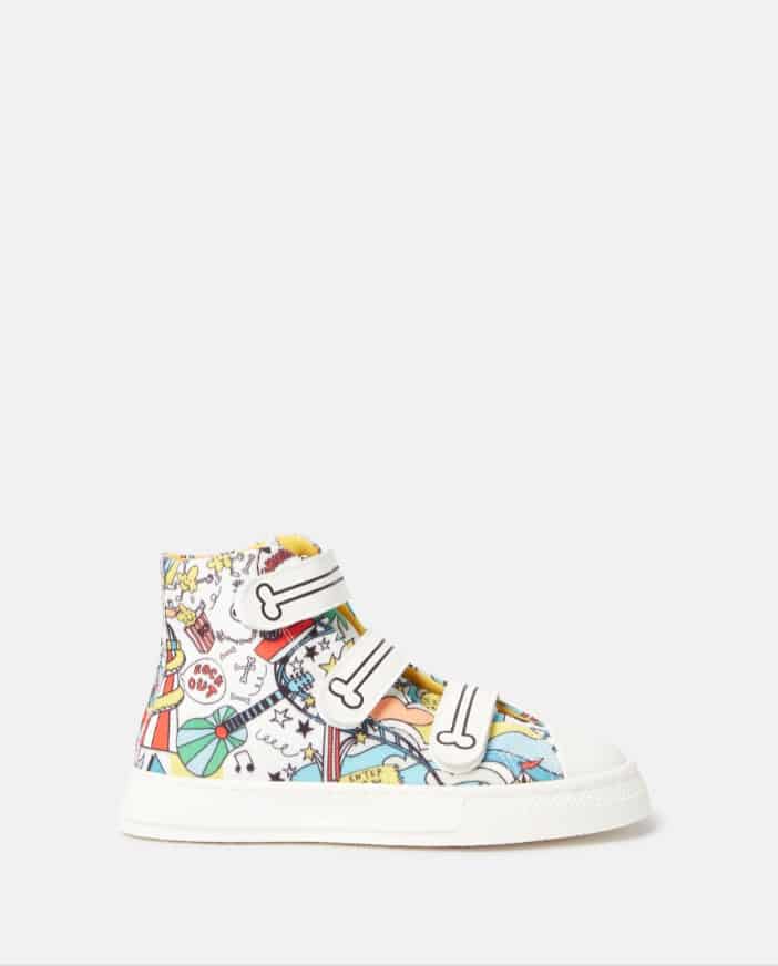 Met deze sneakers aan je voeten val je zeker op! De meerkleurige kermisprint maakt deze schoen bijzonder. Drie klittenbandbanden met botprint zorgen voor gemakkelijk aan-en uittrekken. € 166,00 bij Stella McCartney