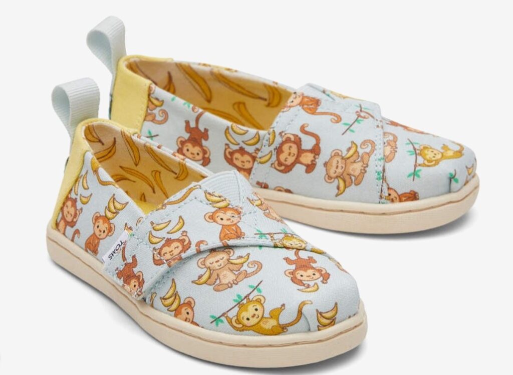 Hou je van dieren? Dan zijn deze espadrilles zeker een aanrader! Met deze ondeugende apen en hun favoriete bananen draag jij deze canvas schoenen met veel plezier. Van € 42,00 voor € 33,60 bij TOMS