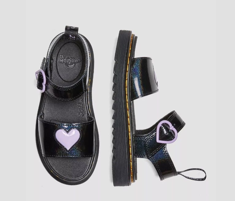 Deze sandalen van Dr. Martens zijn om verliefd op te worden! Gemaakt van PU- gecoat leer met metallic glans. Echt stoere sandalen maar zeker ook lieflijk door de afwerking met hartjes details. € 69,00 bij Dr. Martens